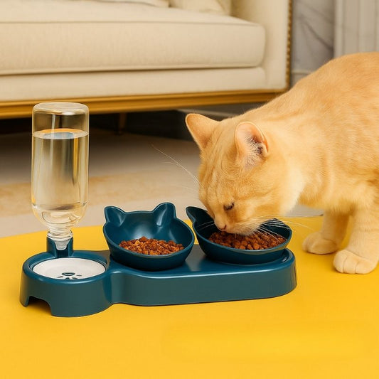 Gamelle chat design 3-en-1 avec distributeur | SnackyBowl™